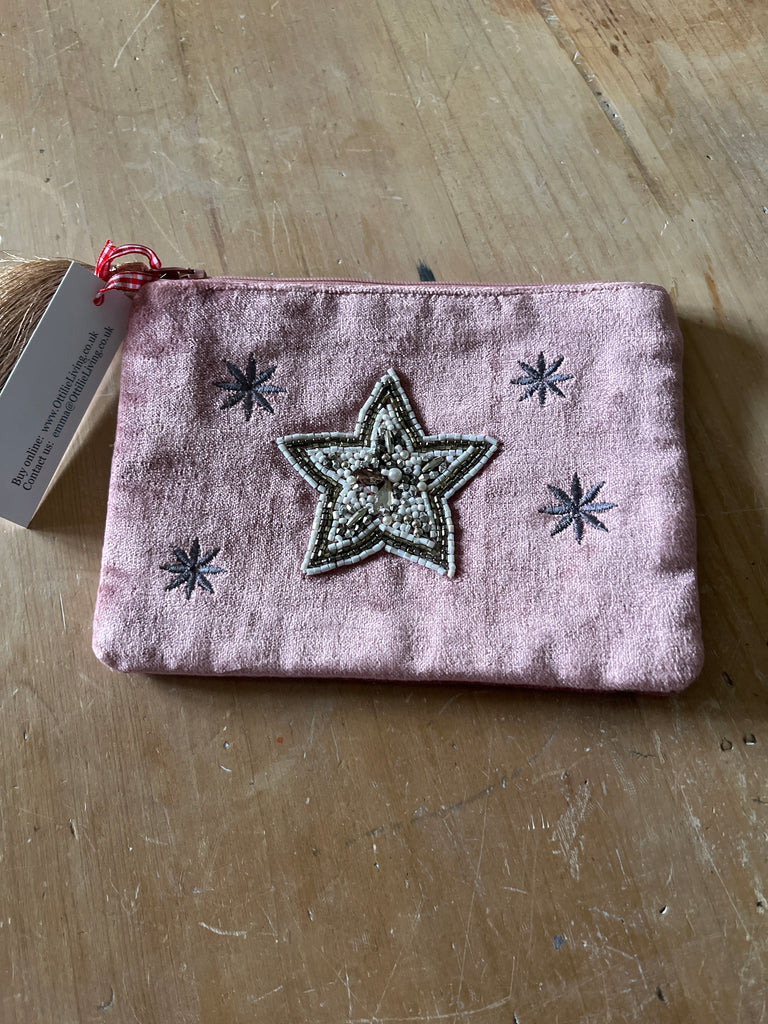 Luxurious velvet makeup bag in a range of different colours. Embroidered with a pretty zebra design. Colour coordinated lining and gold tassel pull. Perfect for a handbag.
